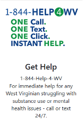 帮助与希望WV -西弗吉尼亚州的一个全州项目,为心理健康和物质使用问题提供信息和资源,以及预防项目和工作培训机会。